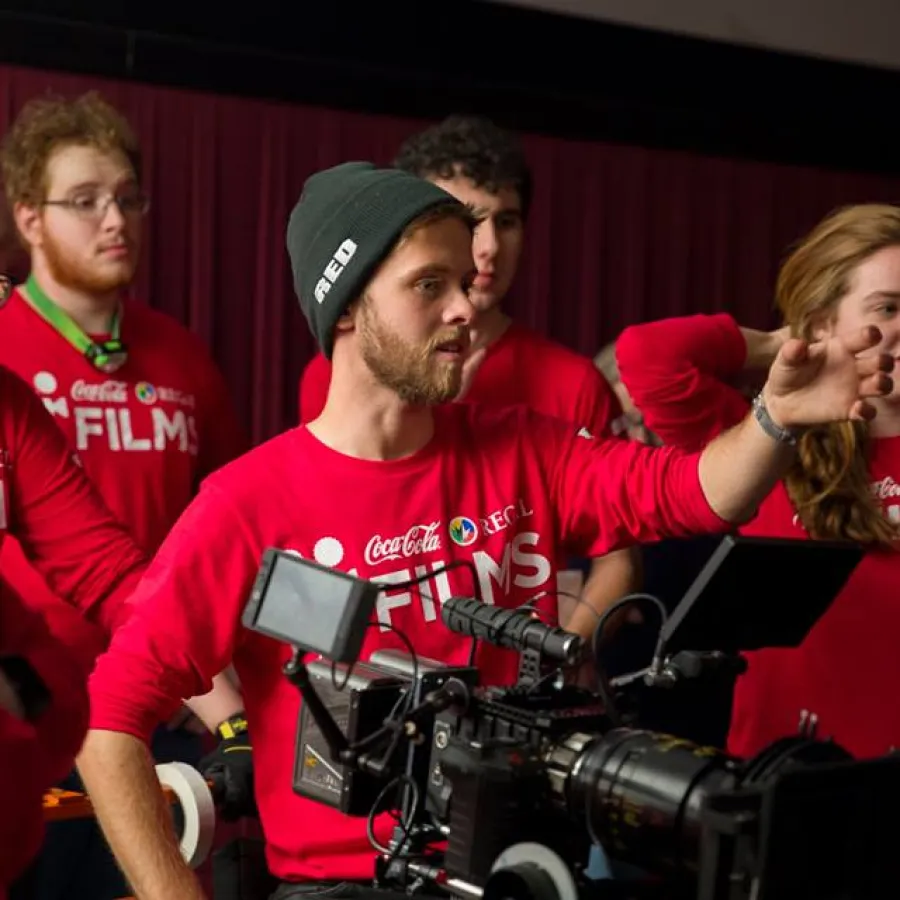 The Coca-Cola and Regal Films Program is a six-month initiative that challenges film students to write and shoot a short film advertising Coca-Cola and Regal Cinemas. Teams from 29 colleges participated in the program, with five finalists selected and given $15,000 along with training and support to create a 35-second film.