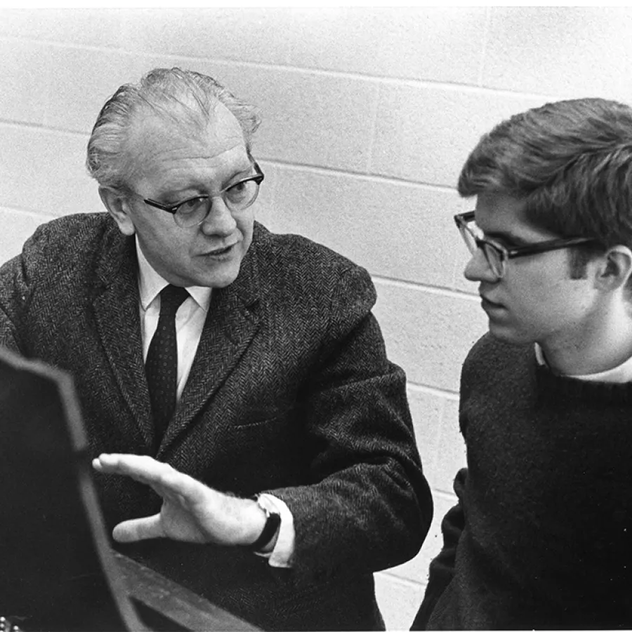 “It was like an earthquake, because what I heard and what people heard was something that they had never heard in band music,” says Frank Battisti ’53, MS ’64, a friend of Husa’s who became the director of the New England Conservatory Wind Ensemble. “It changed the evolution of band and wind ensemble music from that point on.”