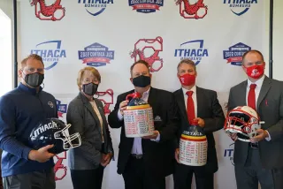 And while the Cortaca Jug will be a centerpiece of Ithaca College’s Alumni Homecoming Weekend, it will by no means be the only game in town, with the annual Alumni Awards Celebration, Athletic Hall of Fame Induction Ceremony and dinners and receptions for celebrated class years among the events being planned.
