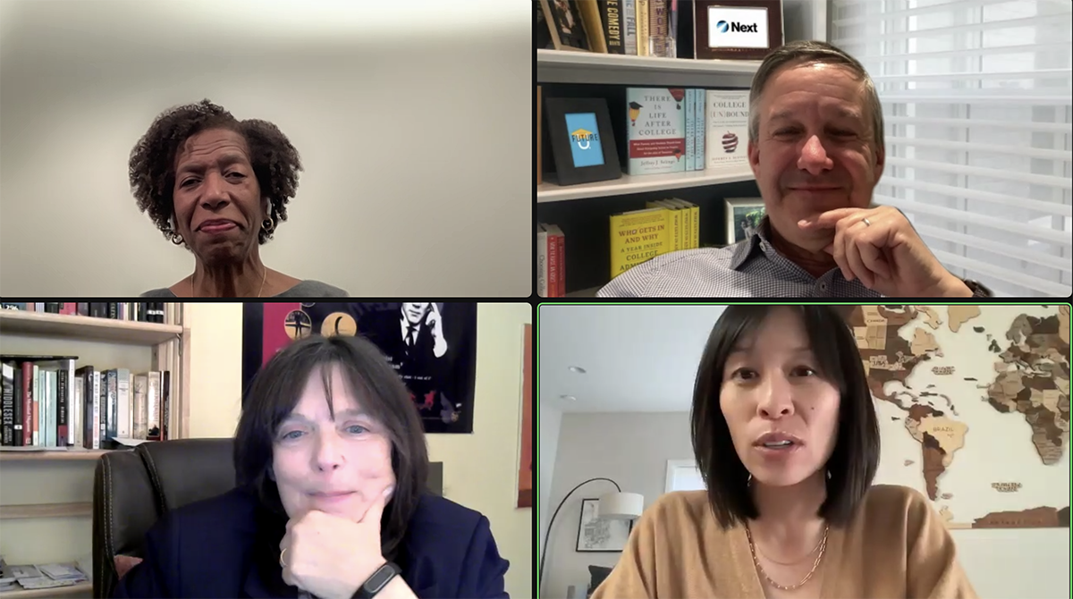 In a panel moderated by Traci Hughes ’85, a member of the Ithaca College Board of Trustees, three higher education experts took to the screen to share their insights with future Ithaca Bombers. Their actionable advice empowered students to make the most of their college experience, no matter which institution they ultimately choose to attend.