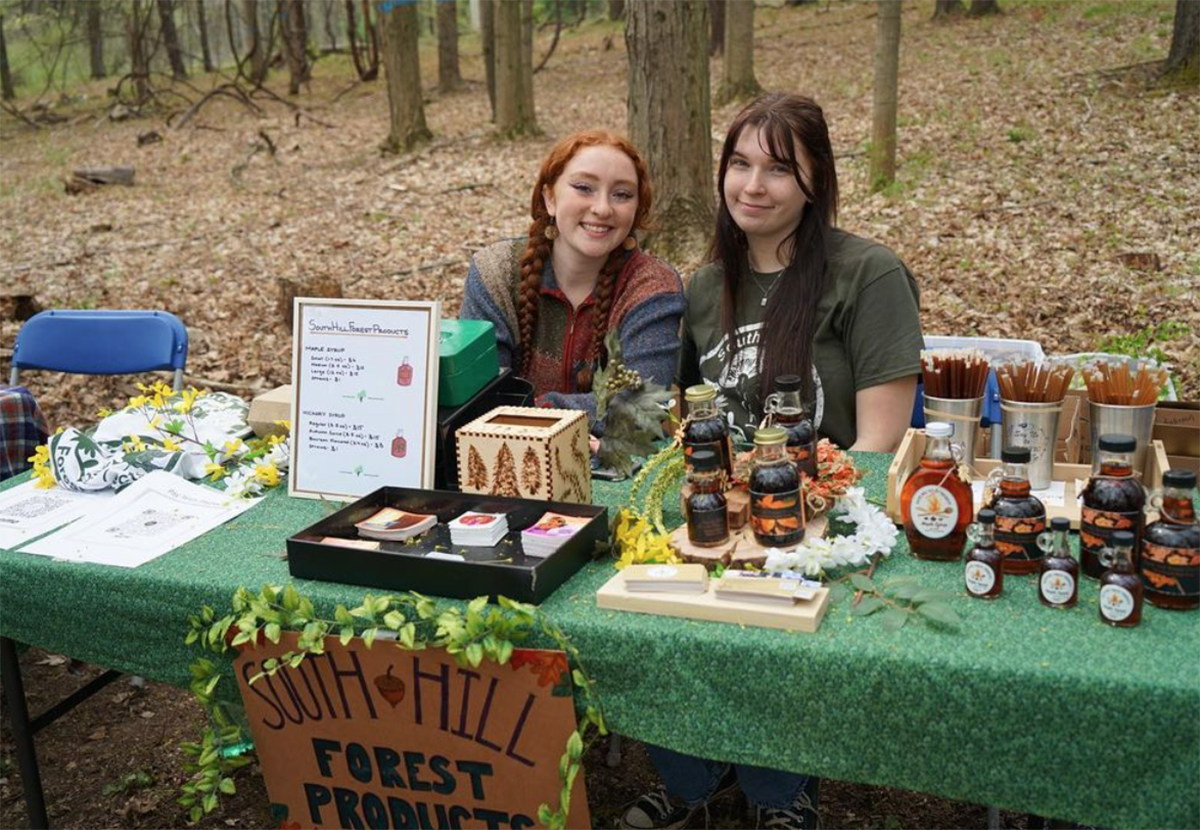 Goods from South Hill Forest Products were available at an open house held on Earth Day at a sugar bush—a stand of maple trees used to make maple syrup—that borders the IC Natural Lands. Nearly 300 people attended the Earth Day celebration, eating pancakes served with the student-made maple syrup and enjoying yard games, live music, and face painting.