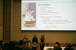 A collaboration between the occupational therapy, physical therapy and computer science departments, Tots on Bots aims to develop robotic devices to increase mobility for infants with disabilities. Almost 80 students have worked on the project since it began in 2008, and Tots on Bots has received more than half a million dollars in external funding.