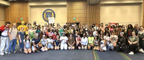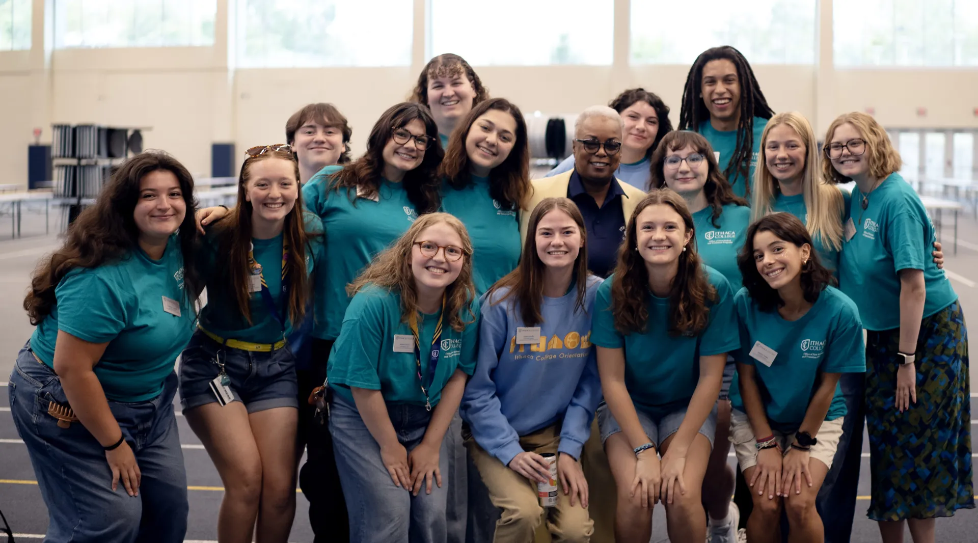 8.21.25 President Cornish and Orientation Leaders at New Student Welcome