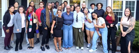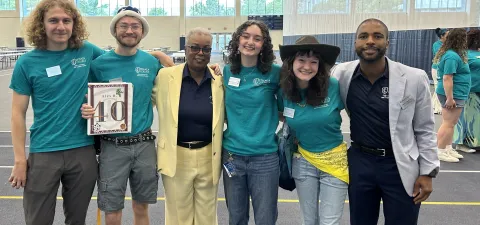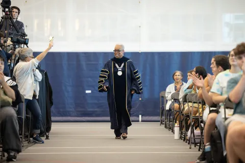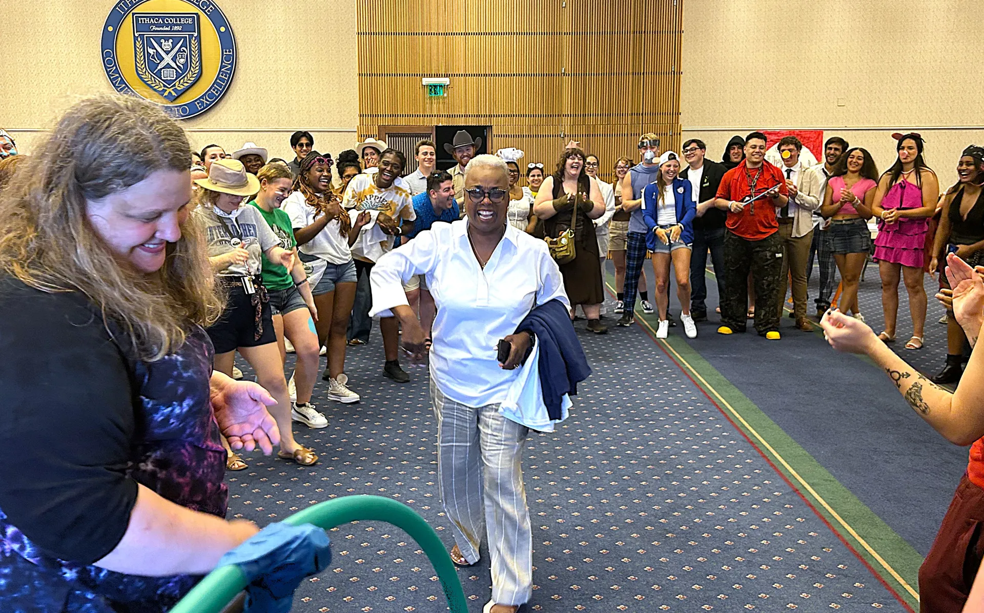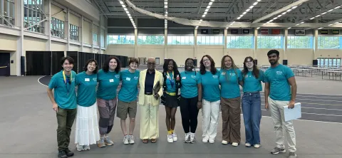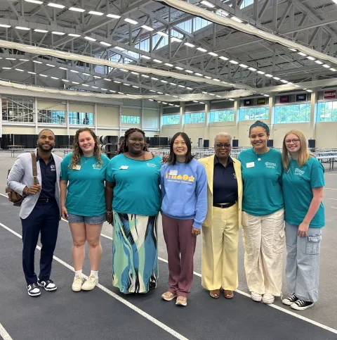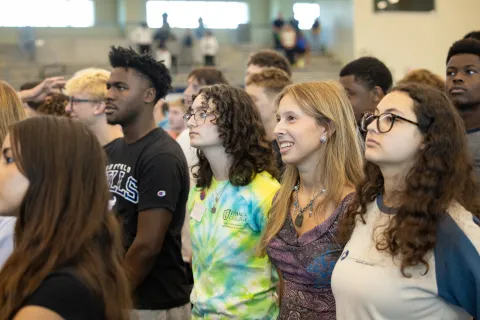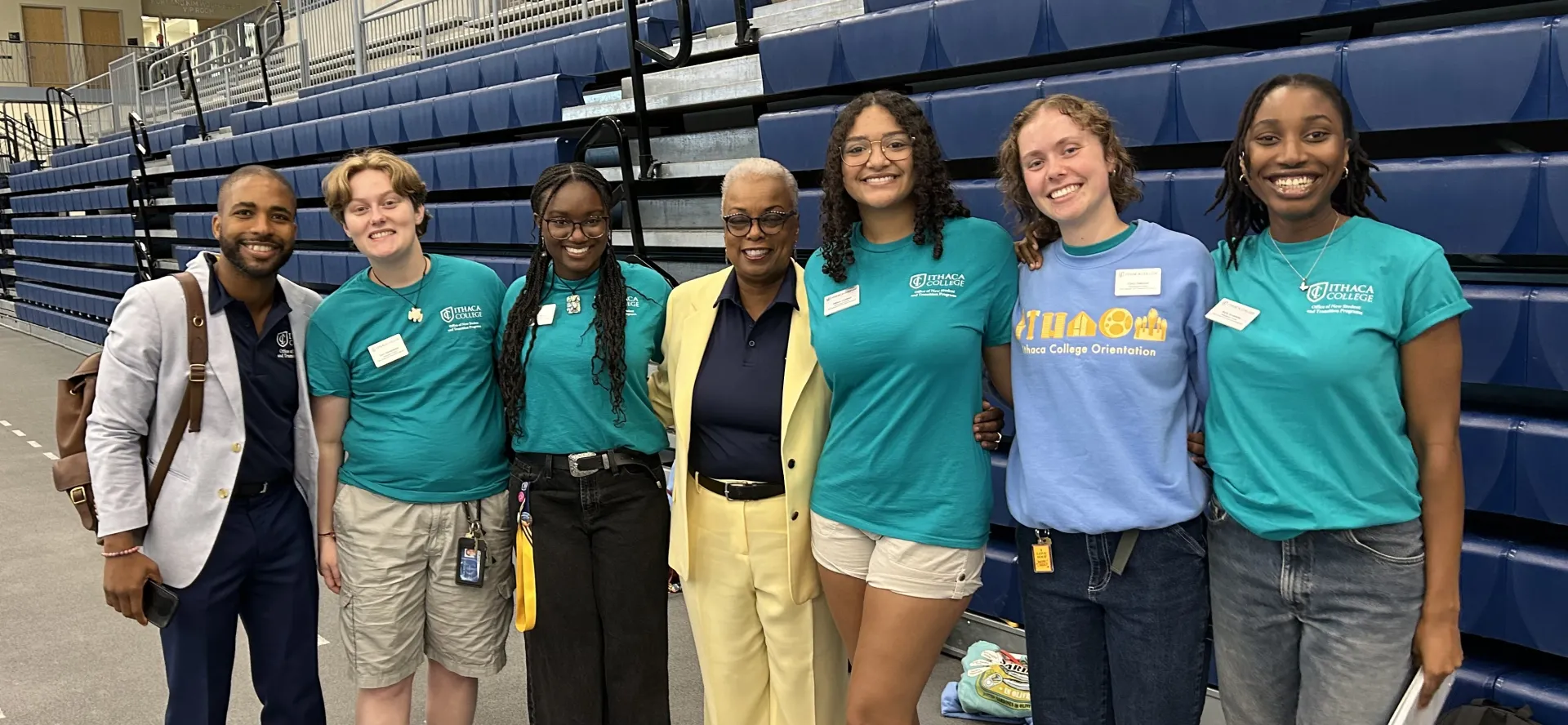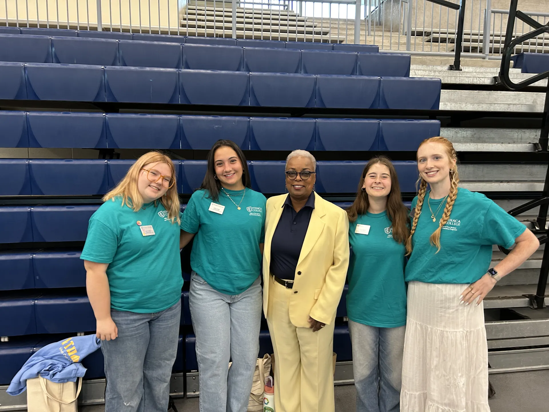 8.21.25 President Cornish, VP Bazile and Orientation Leaders at New Student Welcome
