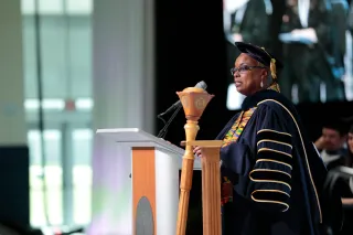 Dr Cornish was a gracious host during our counselor mixer. Dr Cornish is one of a few sitting Presidents who not only attend but actively participate in the annual NACAC conference. Her presence at the conference is noted and appreciated. Many attendees refer to Dr Cornish as the “G.O.A.T.,” and I couldn't agree more. My acumen has sharpened, and my heart rate has slowed thanks to her coaching and mentorship. LaJerne taught me to “be still” in thought when problem-solving and to seek clarity before taking action. Dr Cornish leads by example and with hugs. She is the prime example of mindful leadership (Rock Hall, Vice President for Enrollment Management, Ithaca College)