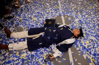 Dissolution Ceremony - Mandala: President Cornish and Grace DeGeorge, Student