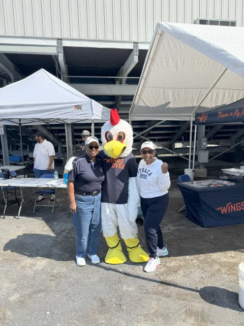 President Cornish, Paula Younger, Executive Director of Government, Community and Constituent Relations, and Chicken (IC Student)