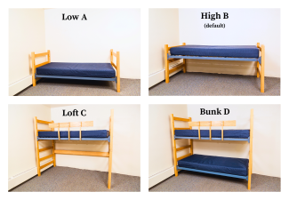 Requests for lofts are completed as quickly as possible, depending on staff and bed part availability. Please do not enter a duplicate request if your first request has not been completed yet, as duplicate requests slow down the system. If you request a bunked or lofted bed, bed safety rails will be installed on both sides of the lofted bed or upper bunk. Residents do not have the option to refuse bed safety rails.