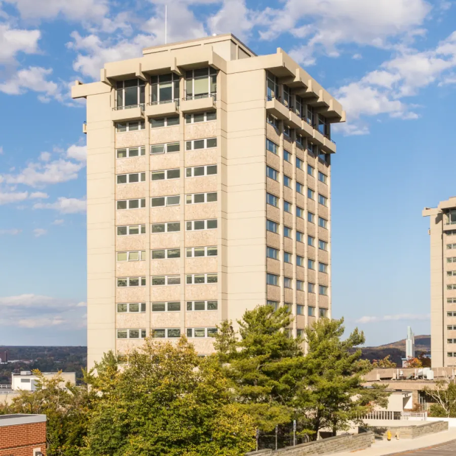 The Towers, featuring single and double rooms, are located on the south side of the Academic Quad and are the most visible landmarks on the Ithaca College campus.