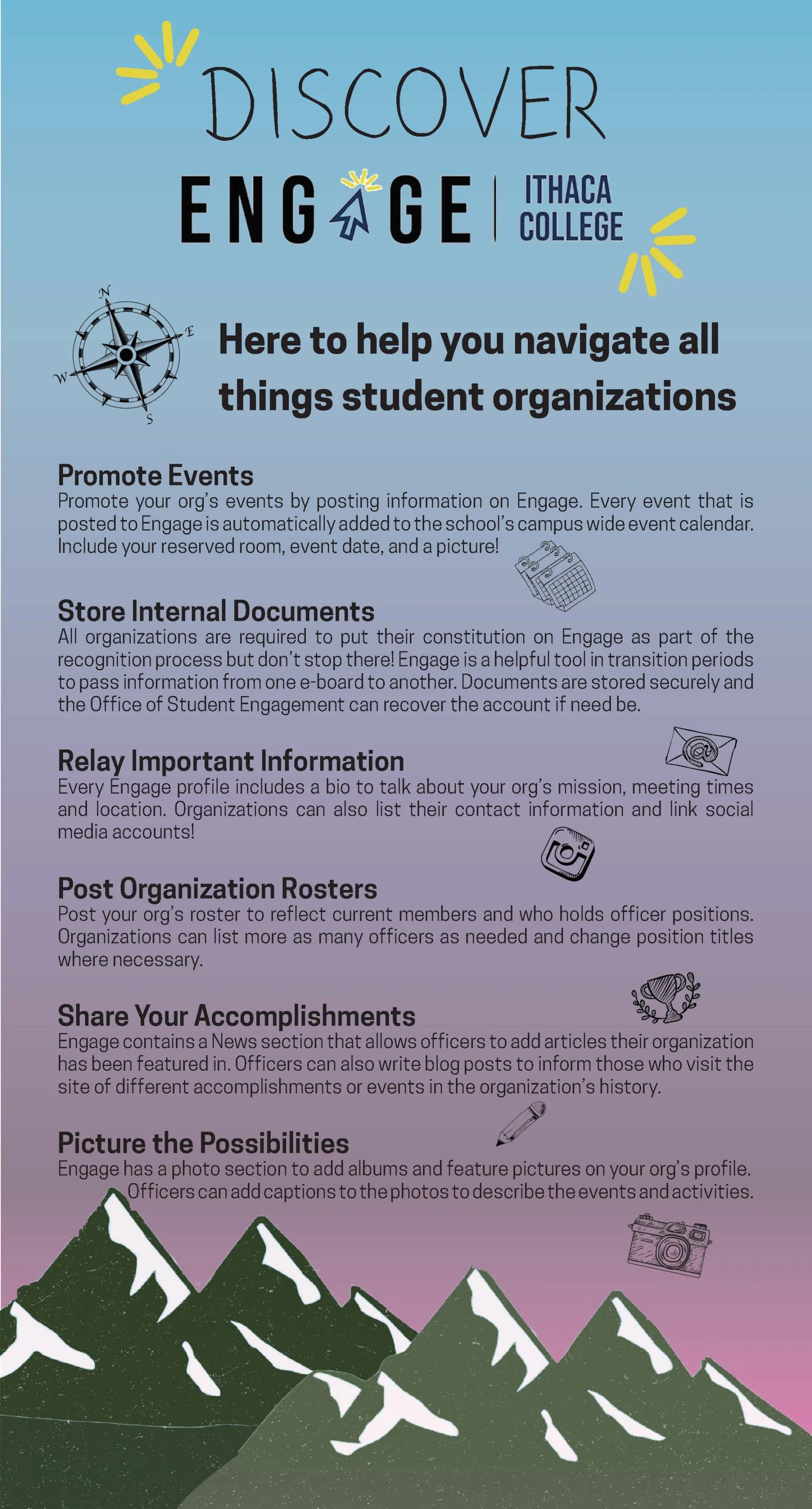 To learn more about student organizations at Ithaca College, please visit Engage today!