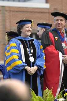 Graduates, this is your day. And all who are here in the stadium today are here because of you -- members of the College community, your family, and your friends are all here to share this very exciting time with you. I know you have enjoyed your years here, and I hope you have enjoyed this past week, spending time with one another; visiting your favorite places, and enjoying the wonderful Commencement Eve Concert and spectacular fireworks last evening. This has been a time to celebrate your years at Ithaca College, as well as to celebrate the wonderful friendships that you have developed here, and I know you will stay in touch with one another in years to come.