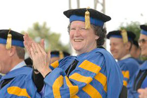 This morning, members of the Ithaca College Community Alumni Association gave each of you a special medallion as you were leaving the academic quad. This presentation of medallions by our alumni is an important tradition that began in our centennial year, 1992. On one side of your medallion is the official College seal, recognizing the history, tradition, and mission of Ithaca College. The other side of the medallion is a quotation unique to your graduating class.