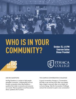 Please join us for our first conversation on October 25th in Emerson Suites from 6-8 PM. Dinner will be provided.